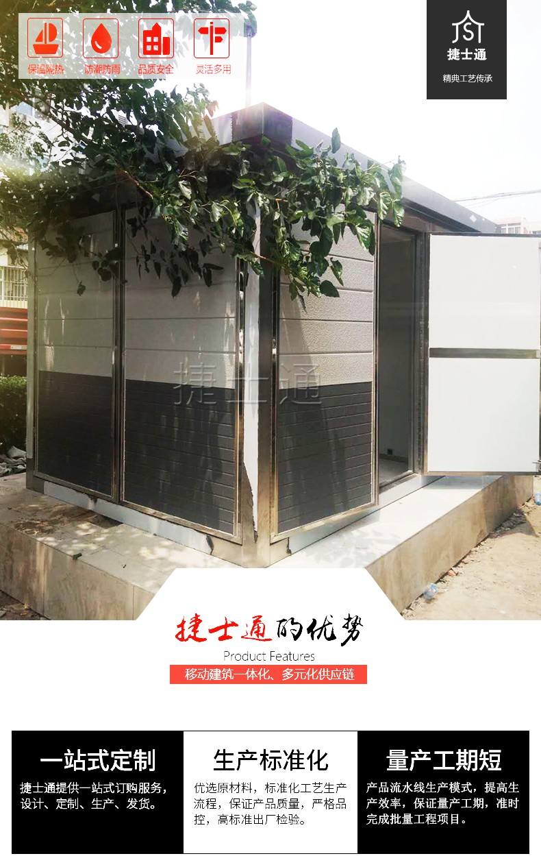 設(shè)備房產(chǎn)品特性:造型新穎,防水、防潮、不變形;表面平整、 光滑、材質(zhì)實(shí)心實(shí)意、色彩可任意搭配;