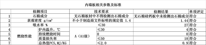 內(nèi)墻板特點(diǎn):采用高密度硅酸鈣材質(zhì)【A1級(jí)不燃防火】;板材不含對(duì)皮膚有害的石棉;表觀密度1.44g/cm;吸水率低,有防潮防水的作用;高溫后質(zhì)量損失率僅為18%。
