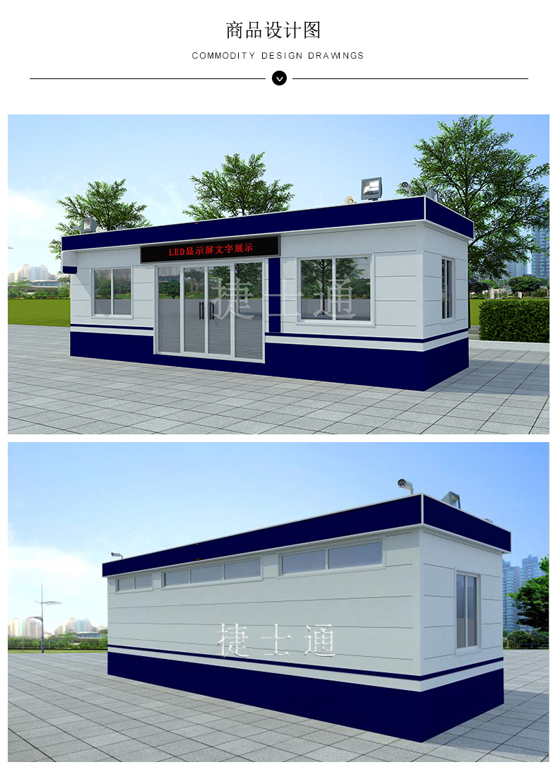 此類警藍色的戶外辦公室一般應用于,高速公路檢查站,市區(qū)警務工作站,火車站汽車站警務室等等場所