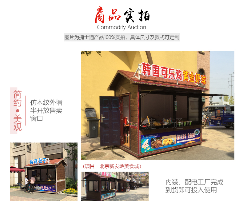 7、售貨亭內(nèi)吊頂:豪華裝飾板,具有很好的保溫隔熱性能,配電安裝齊全;
